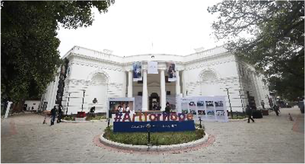 An interdisciplinary stage performance “Hearing the Fingers” embodies the transformative power of art, giving voice to the unheard, particularly in the typically sound-dominated theatre space. The performance promotes inclusivity and expression, bridging communication gaps through lights, visuals, and emotions. The performance is structured in three parts: a stage performance, the documentary film screening, and an art exhibition, inviting audiences to experience a deaf artist Amit Vardhan and a filmmaker Manan Kathuria’s world and communicate beyond words